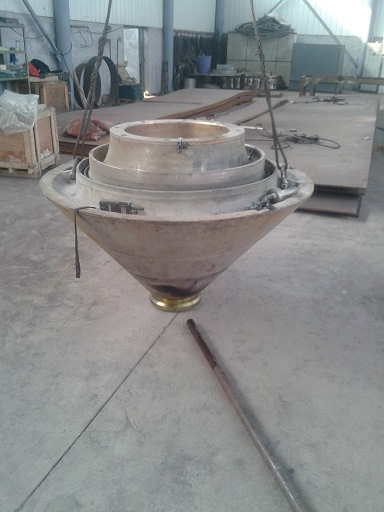 客戶HP500圓錐破碎機動錐體自行更換球頭時,由于安裝不到位,導致無法運行,運到我公司維修。由我司技術人員拆除球頭,重新安裝成功。